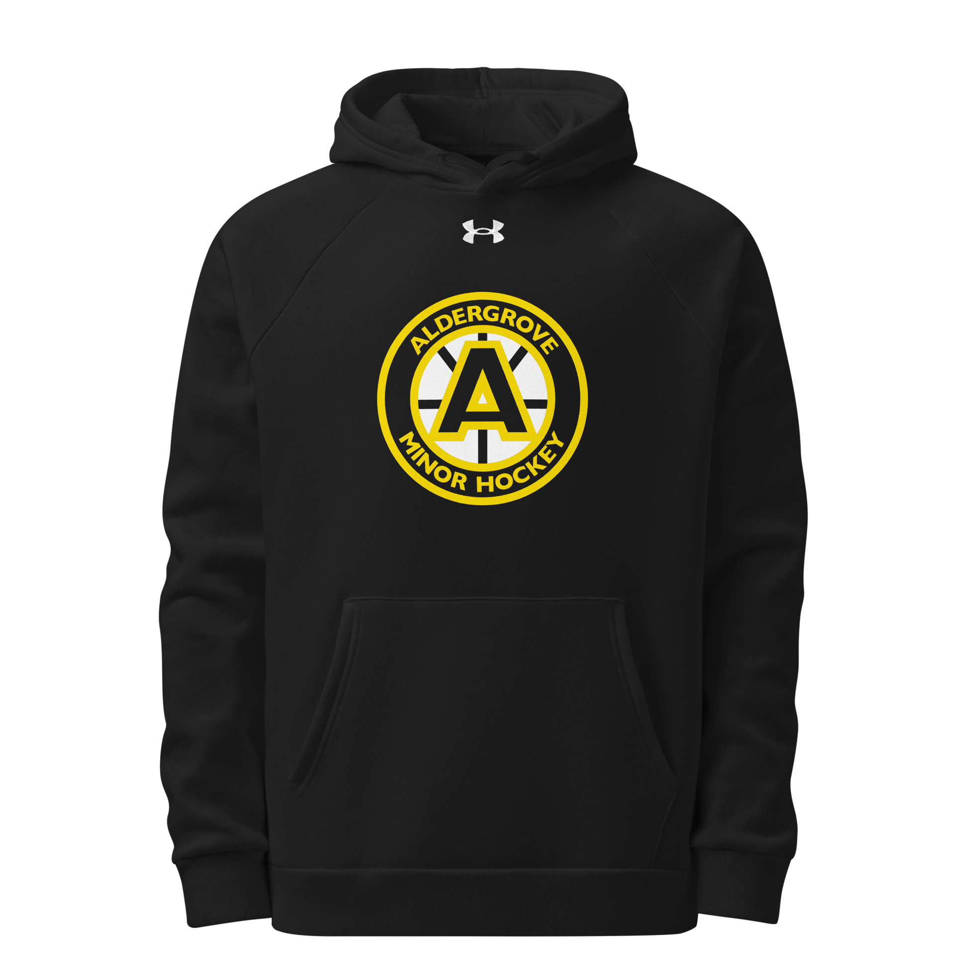 Premium Under Armor hoodie featuring 2 colour AMHA logo on black.